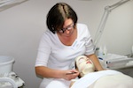 Professionelles Schminken in der Perfumeriieabteilung in Zusammenarbeit mit der Pinselfabrik Leonhardy